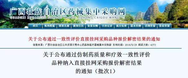 近日,广西省药械采购网发布《关于公布与原研药质量和疗效一致的仿制药品种纳入直接挂网采购报价解密结果的通知(批次2)》。
